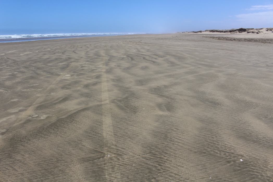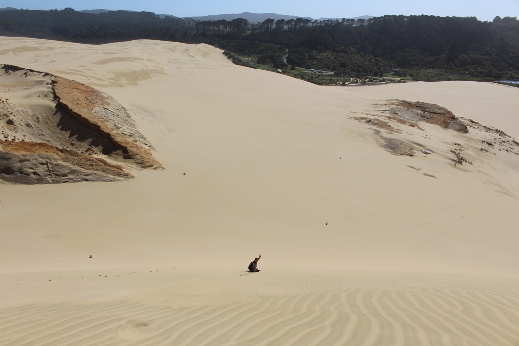 The Te Paki (tee-pah-key) Sand Dunes are towering golden dunes that stretch for miles along the northwestern coast of the North Island. Each day hordes of tourists are bussed in from the “big” Northland cities to enjoy a day of sandboarding and dune roaming, so we made a point of making it to the dunes early in the morning.