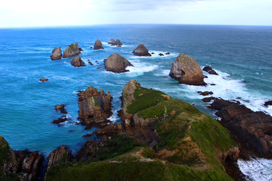 From Dunedin we drove along the Southern Scenic Route until we reached Nugget Point, or Tokata (Maori for “rocks standing up out of water”). Nugget Point is famous for it’s picturesque beauty and for obvious reasons it is of the most photographed lighthouses in NZ. It unofficially symbolizes the gateway to NZ’s Catlins Region and fortunately for us, we were welcomed with amazing views on a sun-filled day, squeals from seal pups playing in tide pools, and the infamous “roaring 40’s” (aka the relentless winds that characterize the region – actually, not so fortunate)!