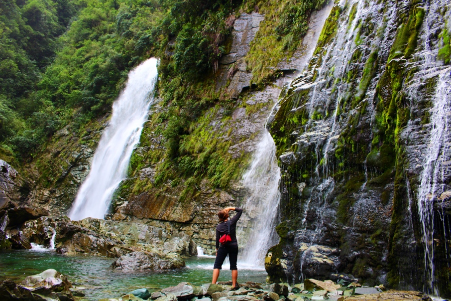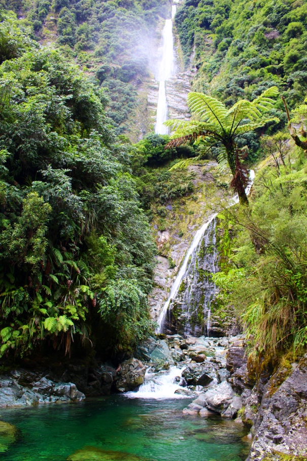 The next morning we set out for Humboldt Falls – a whopping 270 meters (886 feet) of cascading Fiordlands water!  We made the easy 10-minute stroll to the viewing platform, but seeking just a little more adventure, and sensing that there was some WOLOing to be had, we headed back down the track and up the riverbed to find the base of the giant.  Granted, it did take some serious WOLOtude to rock-hop and scramble and wade through the water, but what we found was 100% worth it – this is our favorite waterfall in all of NZ and we had it all to ourselves!