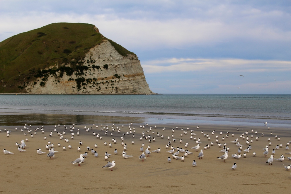From the inlet we gazed out toward Mitre Rocks and Pouwera Island with the intention of renting kayaks from the campground and paddling around in Cap’t Cook’s “boatsteps”; unfortunately, windy weather created rough seas and we had to leave Tolaga Bay behind without that experience. Don’t worry, we’ve added it to our WOLO-list the next visit to NZ’s Far East!