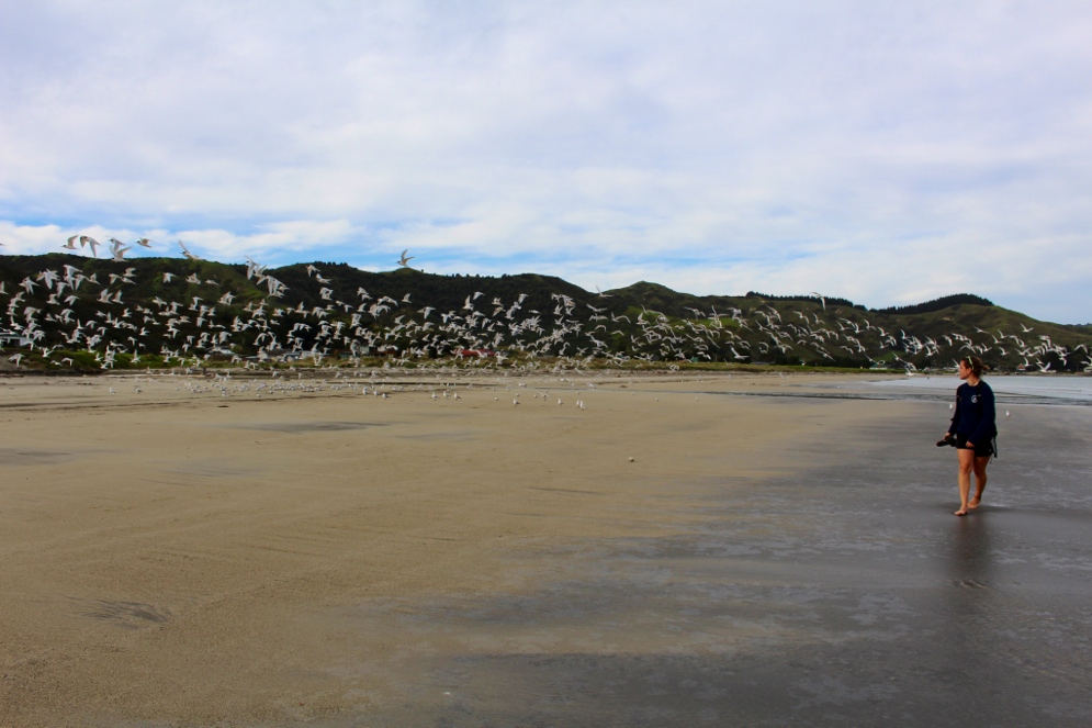 Tolaga Bay is best known for it’s “mile-long” wharf, making it a popular tourist attraction; however, the highlight of our trip to Tolaga was the moderate 45-minute walking track to Cook’s Cove. After ascending through a field of skiddish sheep, we dropped down into the jungle before popping out into a green field that sprawled out to the water’s edge. The inlet that lie in front of us marked Captain Cook’s 1789 landing (not to be confused with Captain Hook, even though we found Peter Pan) and was aptly named Cook’s Cove.