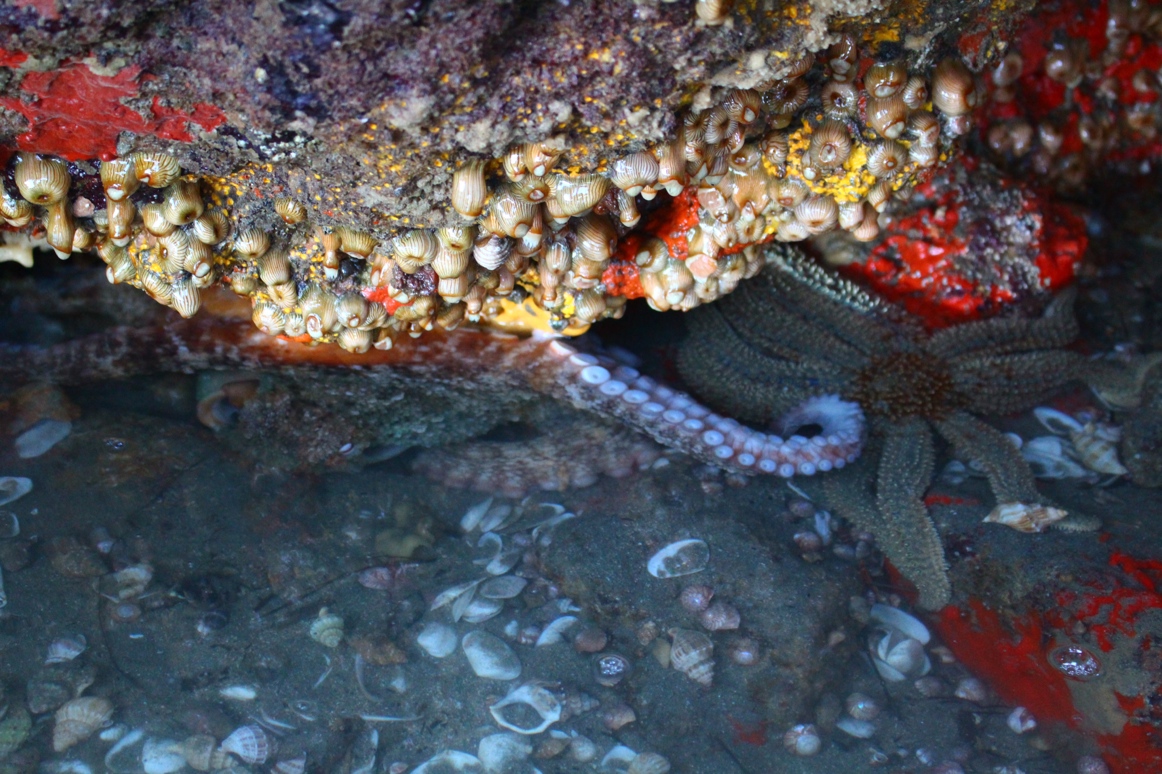 From the Mount we drove west to another B.O.P. favorite (and one of our Top 5 NZ Beaches): Waihi (why-hee) Beach. Waihi Beach is famous for the sun, surf, and sand making it a popular destination for vacationing Kiwis; however, we loved it for the multi-colored scallop shells, gigantic sand dollars, and amazing biodiversity found within the tide pools! After nearly stepping on an octopus, we were fortunate enough to observe not one, not two, but three adult octopi catching crabs for dinner (we still think the best part was the baby octopus we found swimming around – 2 inches long at best and bright blue)! Some alternative names for Waihi Beach could be “Hermit Crab Heaven”, “Tide Pool Pandemonium”, “Sea-life Metropolis”, “Sea Scallop Sands”, “Sand Dollar Sanctuary”, or our personal favorite, “WOLO Cove”.