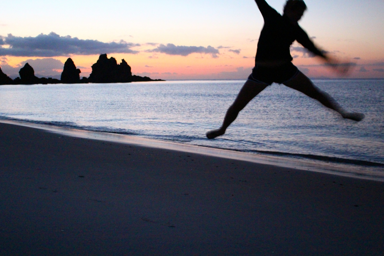 In the morning we awoke with a full-on WOLO-spirit and decided to venture off the beaten path to the end-of-the-road. At the dead-end we parked Blue Rhino (our trusty campervan) and followed a grassy path alongside some gorgeous (yet empty for the season) beach houses until we arrived at the white sand beach below. Aside from two Oystercatchers, we were the only souls on one of the most beautiful patches of seacoast on the entire island, if not in the entire world (Top 5 NZ Beach List, no doubt)! With a find like this we had to stay – there was white sand for our toes, irresistible blue-green waters for skinny-dipping, a warm breeze to dry us off, and some friendly Kiwis just down the road that would surely (we hoped) let us camp on their property for one more night – so there we sat and relaxed.