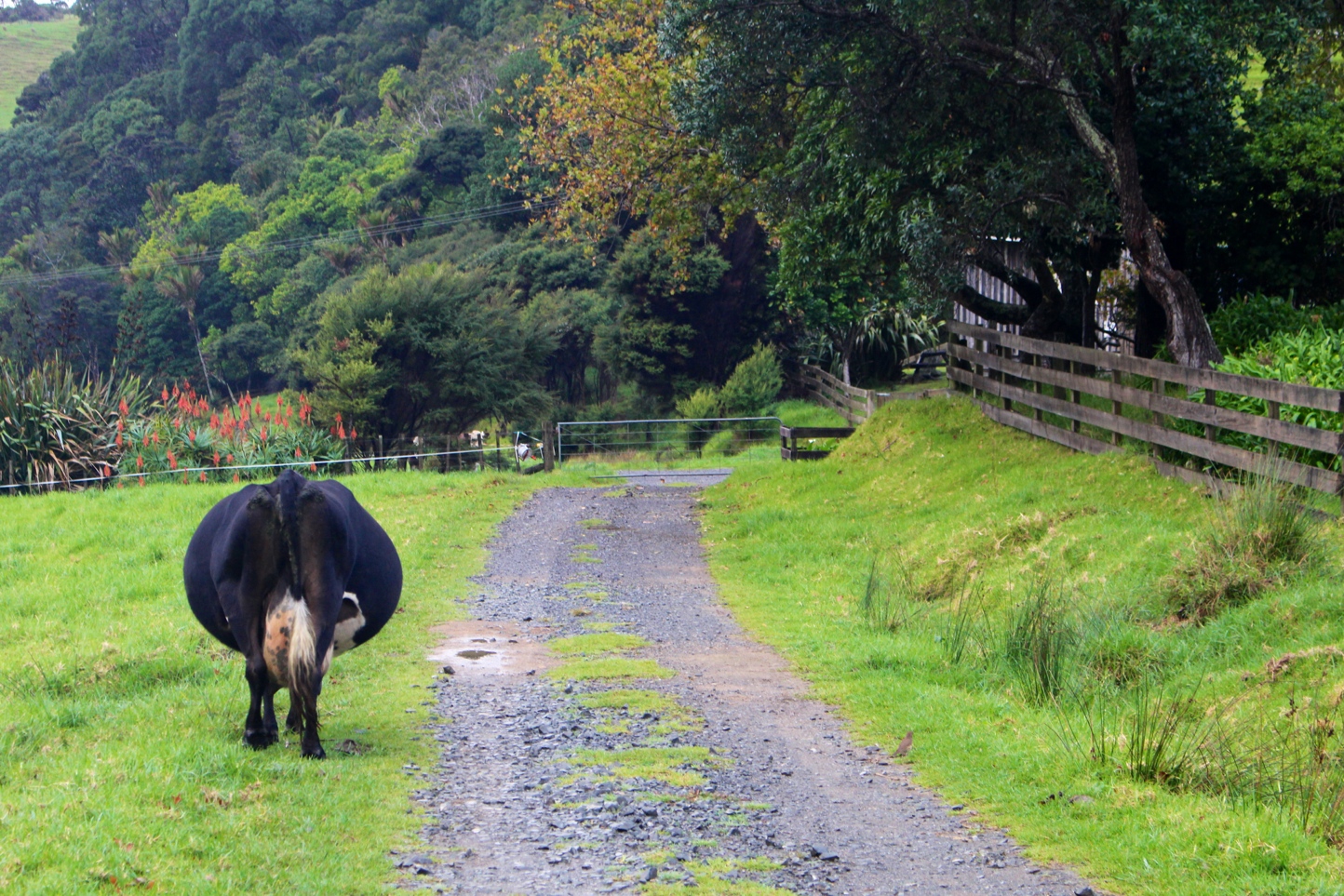 Our hosts were gracious Kiwis and the bonds formed and friends made are truly invaluable. The people (Johnny, Jancey, Stevie, Marie, Baerbell, Jerry, Robin, Amy, Peter, and Carla) were wonderful, the farmhouse sleeping arrangements were cozy (and it was nice to be able to stand up to put clothes on), the hot showers were amazing, the tea breaks were delightful, our WWOOFing comrade from the Netherlands was COOL AS (Evelyn), and the fresh-cooked farmhouse food was unreal – especially the smorgasbord available at the Monday night Moehau Pot Luck!
