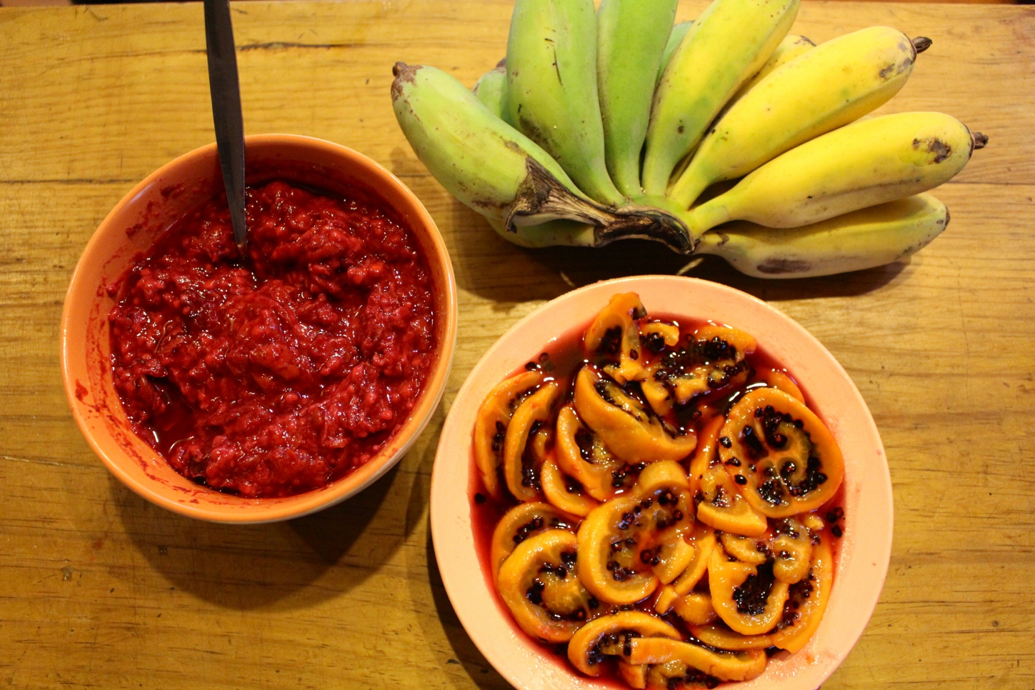 The community was situated on a piece of heaven on Earth! First, we were welcomed by sweeping views of beautiful Sandy Bay. After gawking at the ocean we made our way up the gravel road to the farmhouse to be greeted by none other than Hazel (the community’s milk, butter, and cheese source). We drove past stands of luscious fruit trees (mango, apple, banana, mandarin oranges, mountain guava) and backyard gardens full of fruit (rainbow chard, tomatoes, carrots, pumpkins, squash, tomatillo, and leeks) before we finally found Johnny, a free-spirited, knowledgeable vulcanologist (among other things) tending to the communal stove.